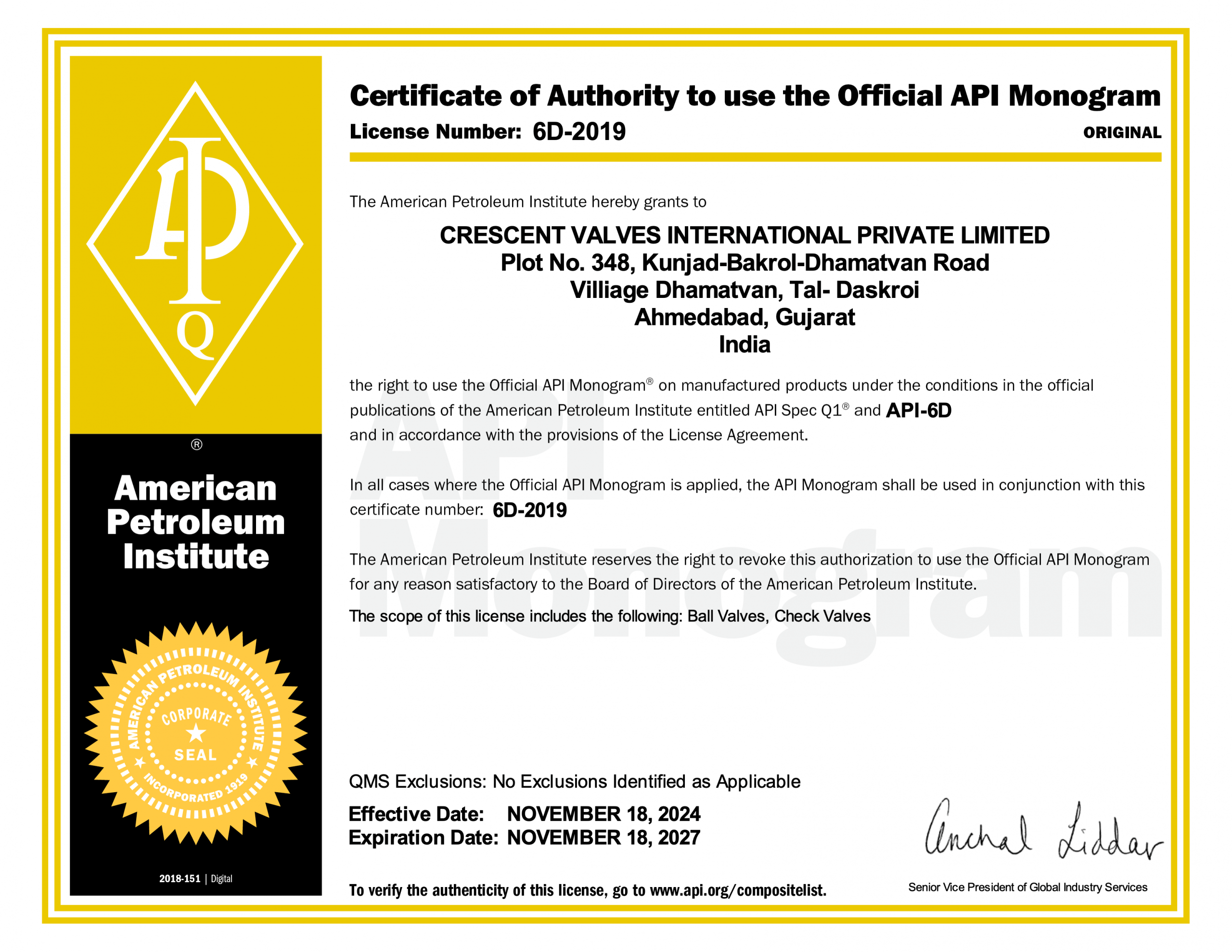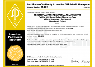 Certificates ISO 9001-2015 ISO 14001-2015 ISO 45001-2018 API Certificate 6D UL Certificate CE Certificate