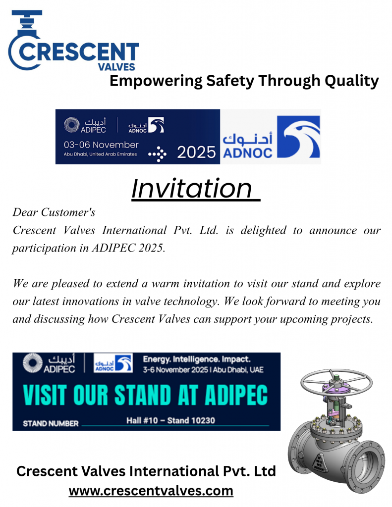 Join us from 3rd–6th November 2025 in Abu Dhabi, UAE, and discover Crescent Valves’ latest innovations in valve technology. 🚀